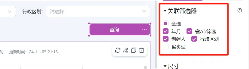 选中的筛选器需要点击查询按钮才会执行筛选。