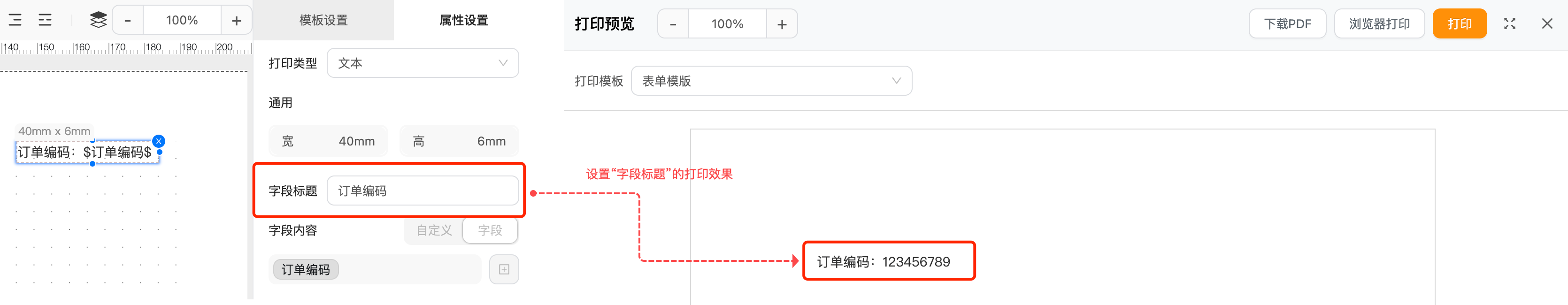设置字段的打印类型与拖入对应画布组件(文本/富文本/日期时间/图片/条形码/二维码/富文本),然后配置画布组件的打印内容绑定业务字段,可以达到一样的效果。