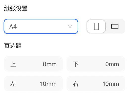 如果是内置纸张,选择后,纸张方向(横向 / 纵向)、页边距;