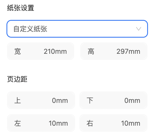 如果是自定义纸张,需要设置纸张的宽、高、页边距