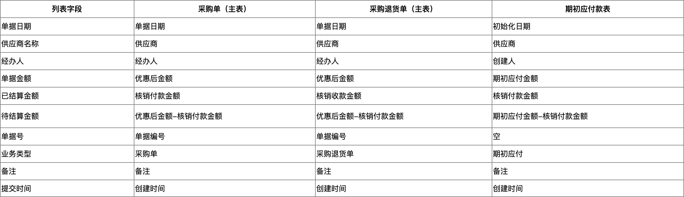 1、数据来源:已审批的采购单、已审批的采购退货单以及初始化完成的期初应付。