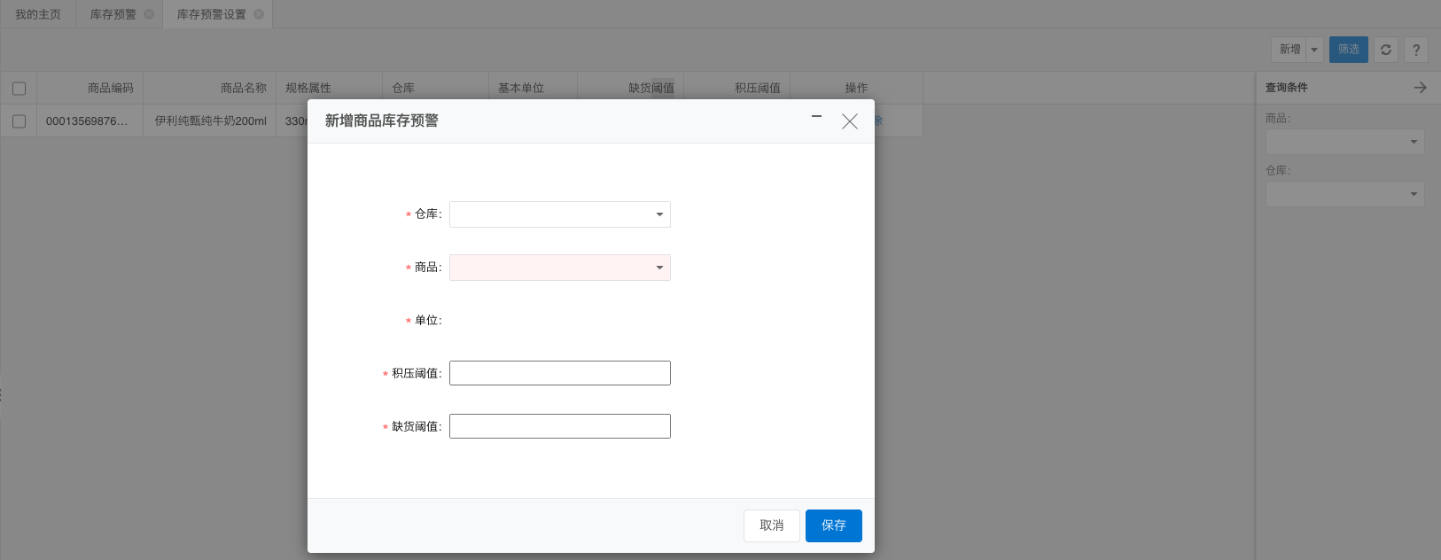 缺货阈值:即库存的上限是多少,缺货阈值需小于积压阈值;