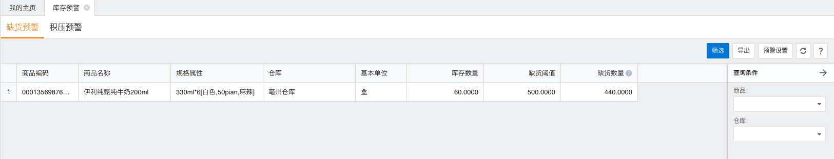 主要通过设置库存上限和库存下限来对库存数量进行预警,防止库存积压过多,占用自己,或者缺货严重,影响销售。