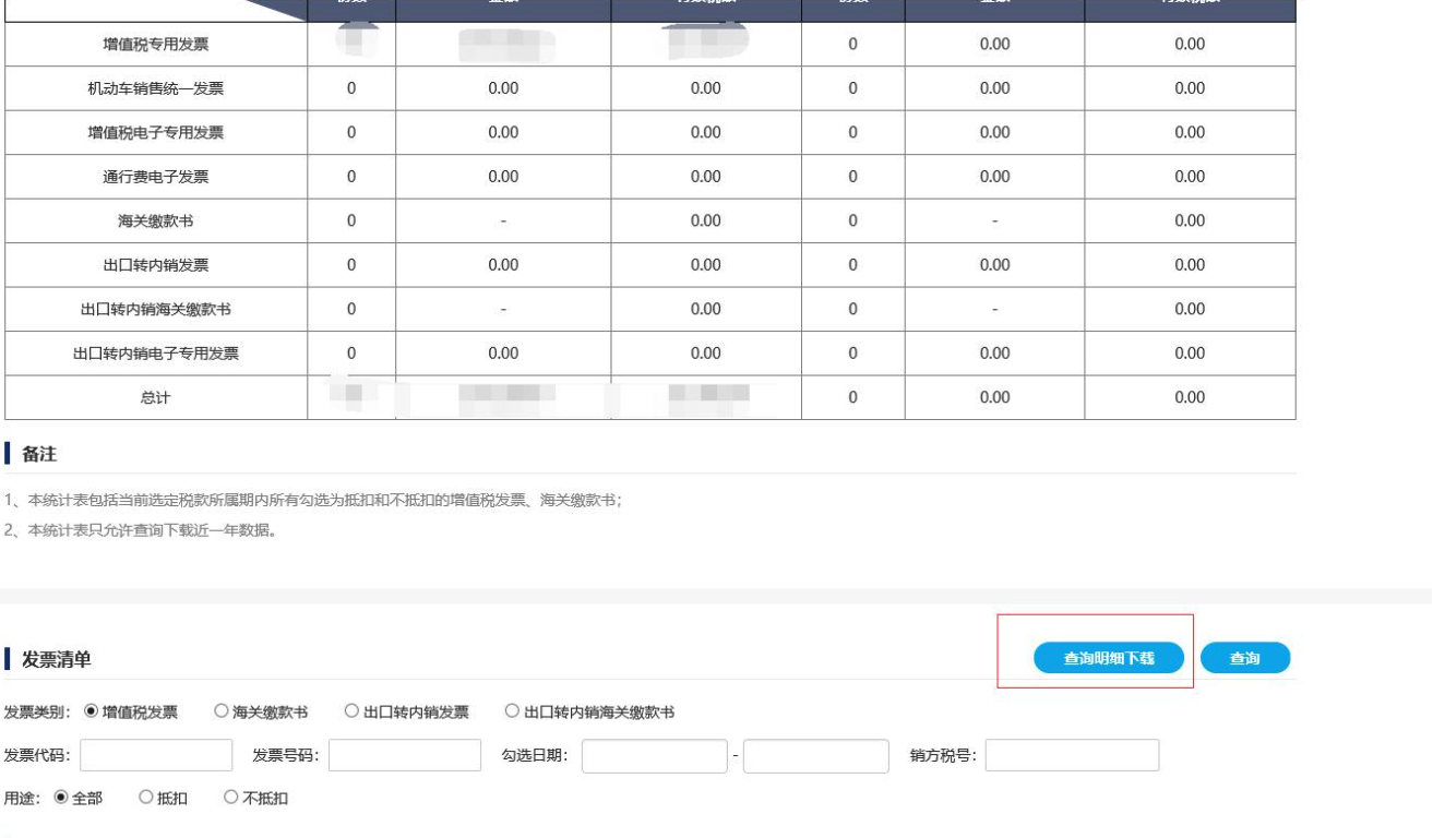 二、点击页面右下方【查询明细下载】获取勾选发票清单;
