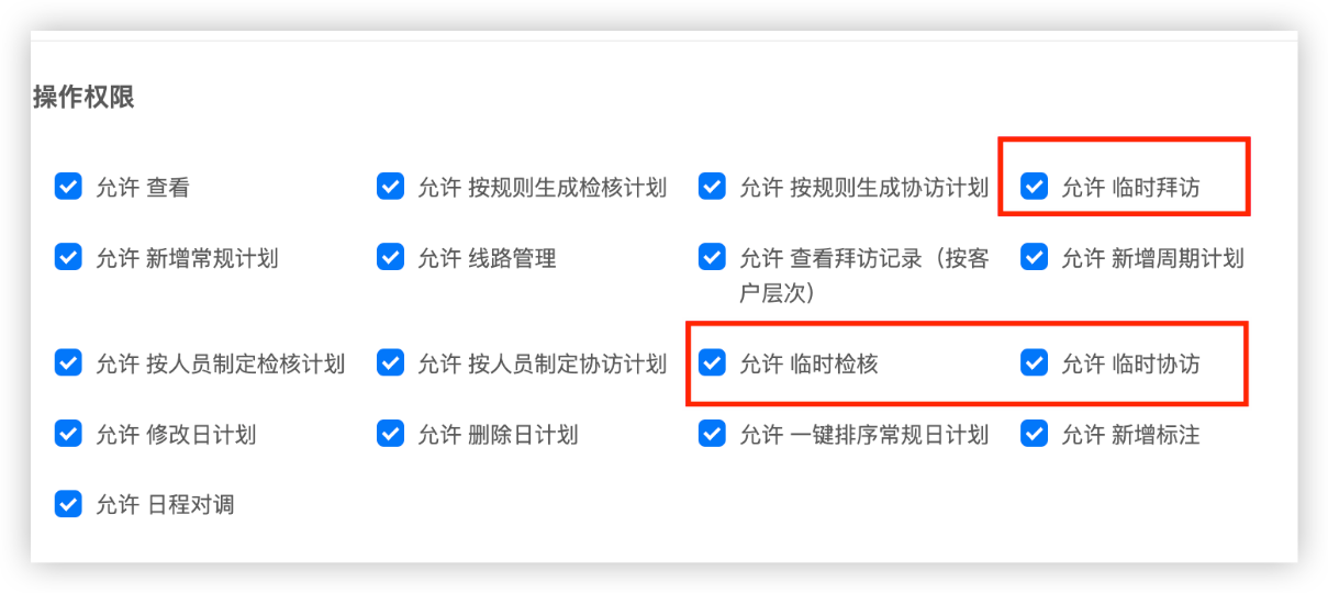 临时拜访列表页卡片的拜访/检核/协访按钮根据用户权限显隐