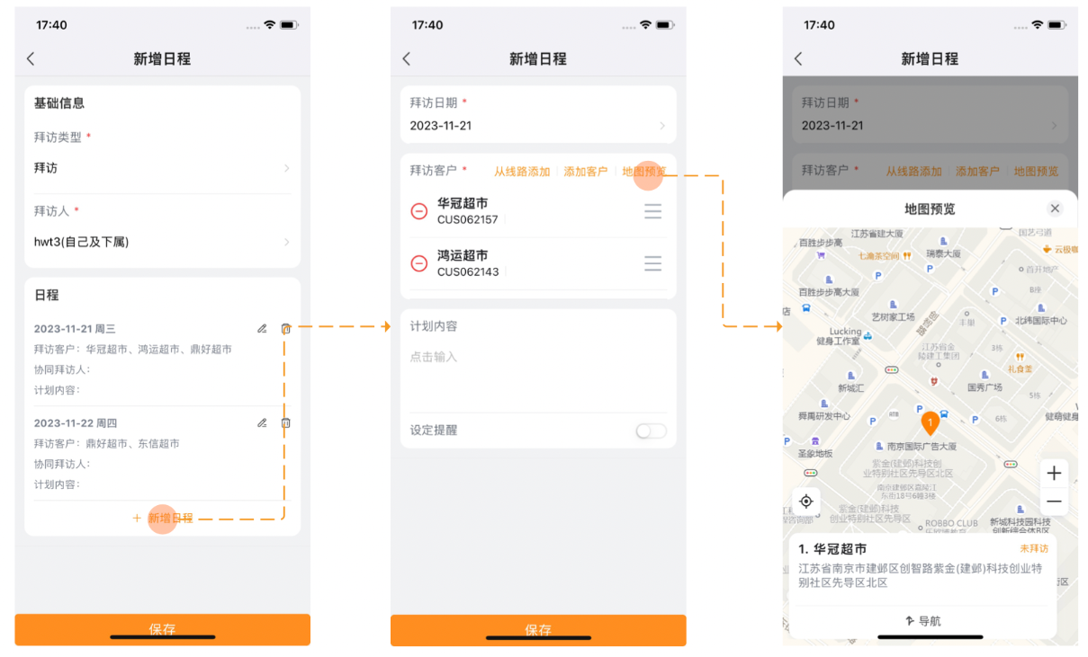 【列表】客户卡片支持跳转详情页及地址导航页面,帮助用户快速导航至门店