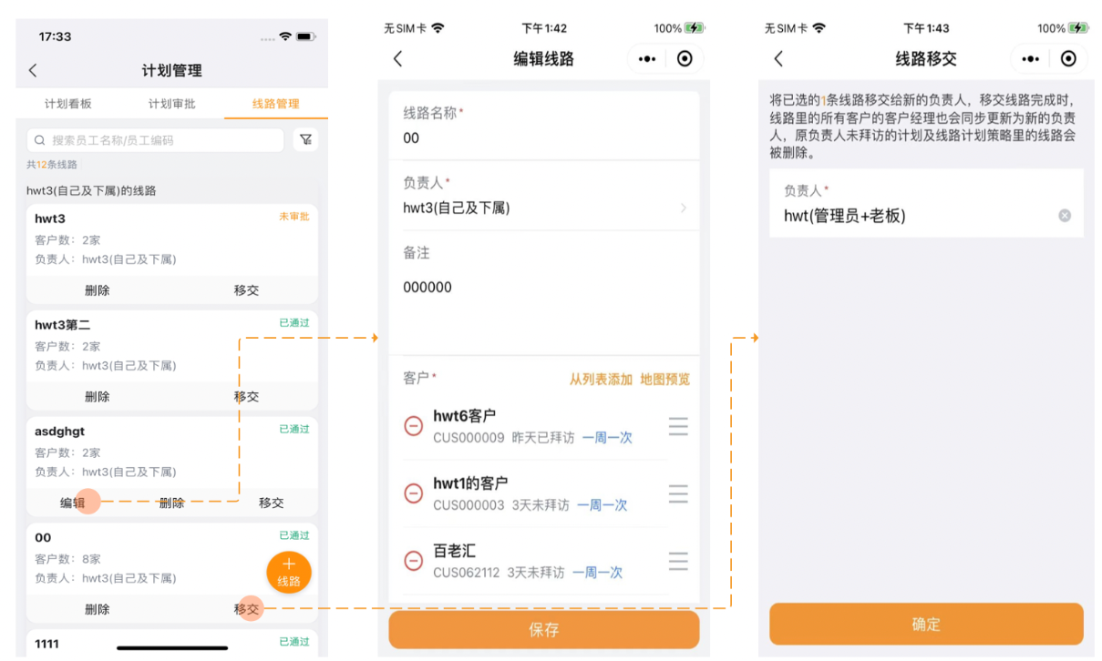 【列表】展示当前用户所有可见员工的线路数据,显示优先级顺序:1)按员工,员工序号升序>员工名称升序>员工id 升序;2)相同员工的线路,线路顺序升序>线路创建时间升序;3)相同线路中客户按照顺序生序 ;优先级存在先后顺序,若第一优先级相同,则按第二优先级排序,以此类推