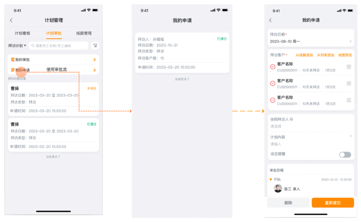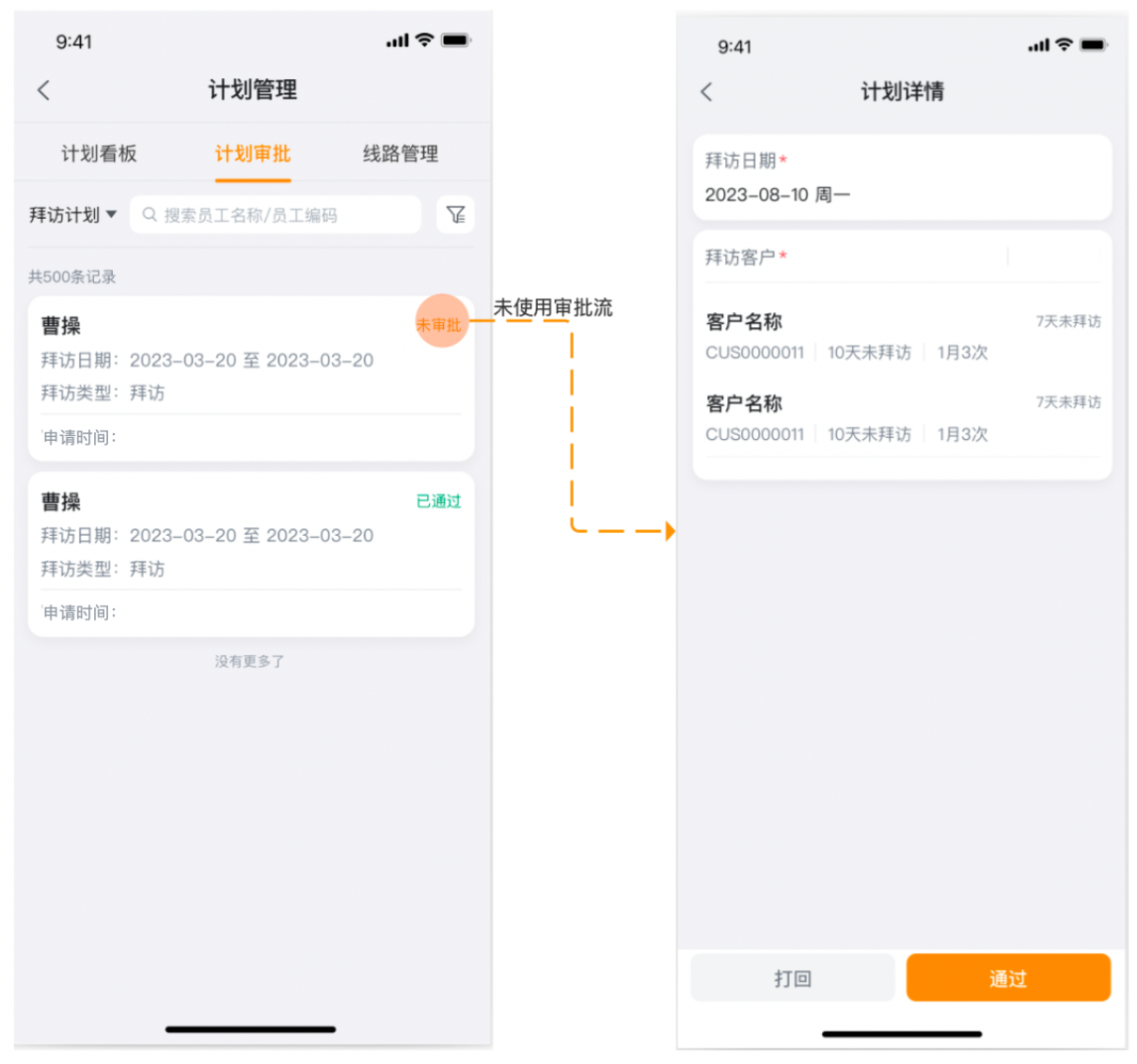六、计划审批页面——支持未使用审批流/使用审批流企业的审批需求