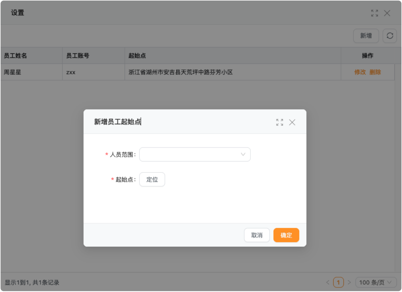 - 注意,每个员工只允许存在一条起始点信息。在创建排线任务时不会强制要求每个业务员都有起始点,但是无起始点可能会对排线效果产生一定影响。
