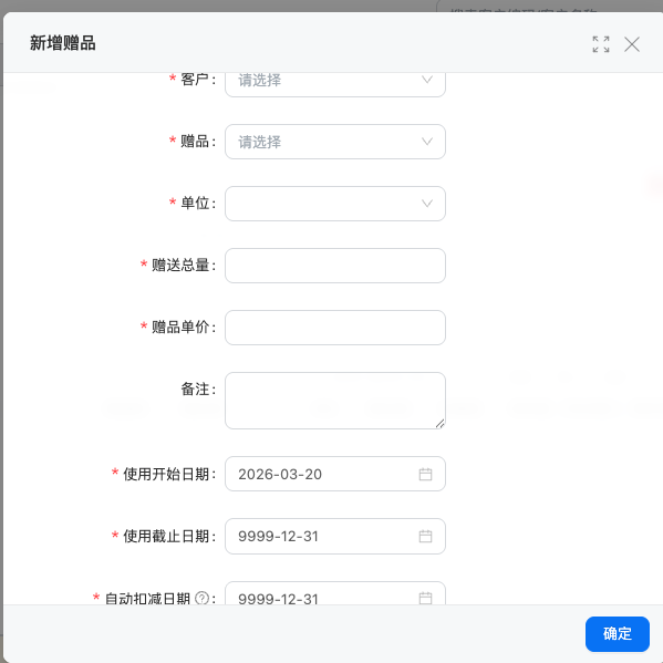 - 自动收回机制:除了设置使用开始和截止日期外,系统特有“自动扣减日期” 。一旦到达该日期,客户尚未领取的剩余赠品将被系统自动回收,防止资源超期占用 。