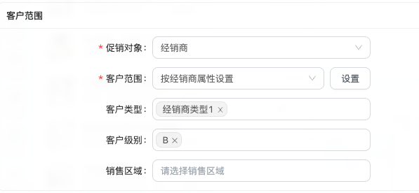• 按客户属性筛选:根据客户的类型、级别或所属销售区域等属性,批量设置促销的适用范围。