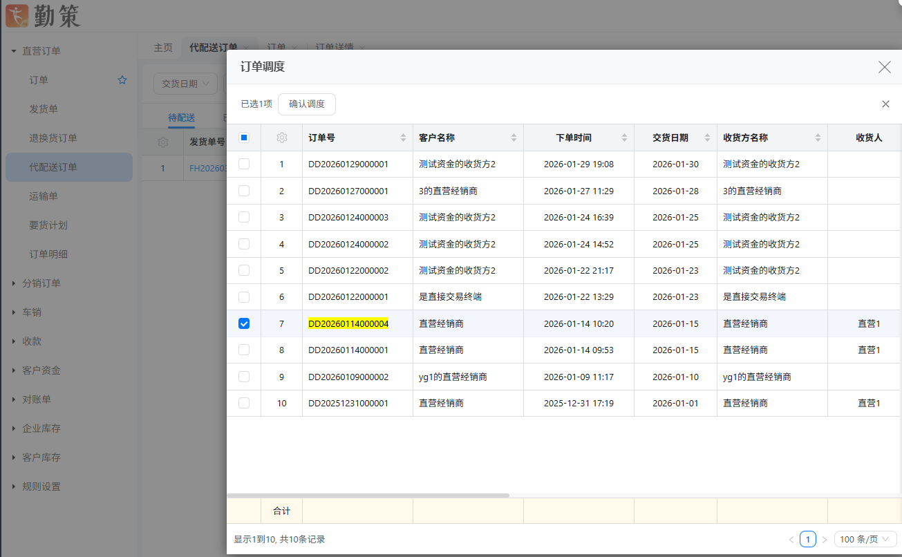 在待配送订单中,可以手动调度需要配送的订单。