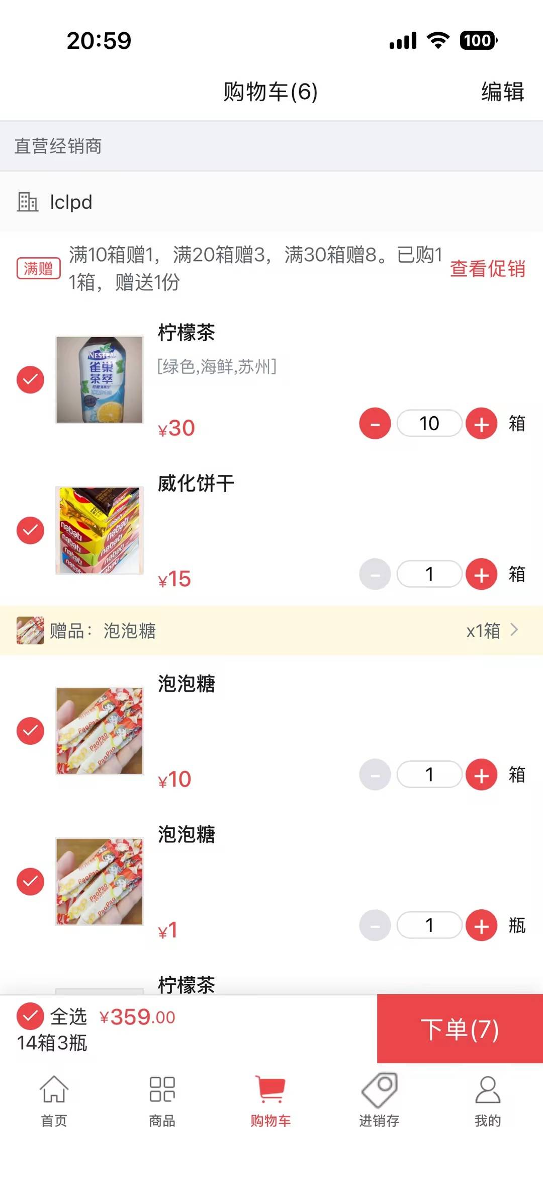 - 促销进度提示:系统会实时提醒“满 X 送 Y”的进度,点击“查看促销”可了解详细的阶梯奖励及达标要求 。