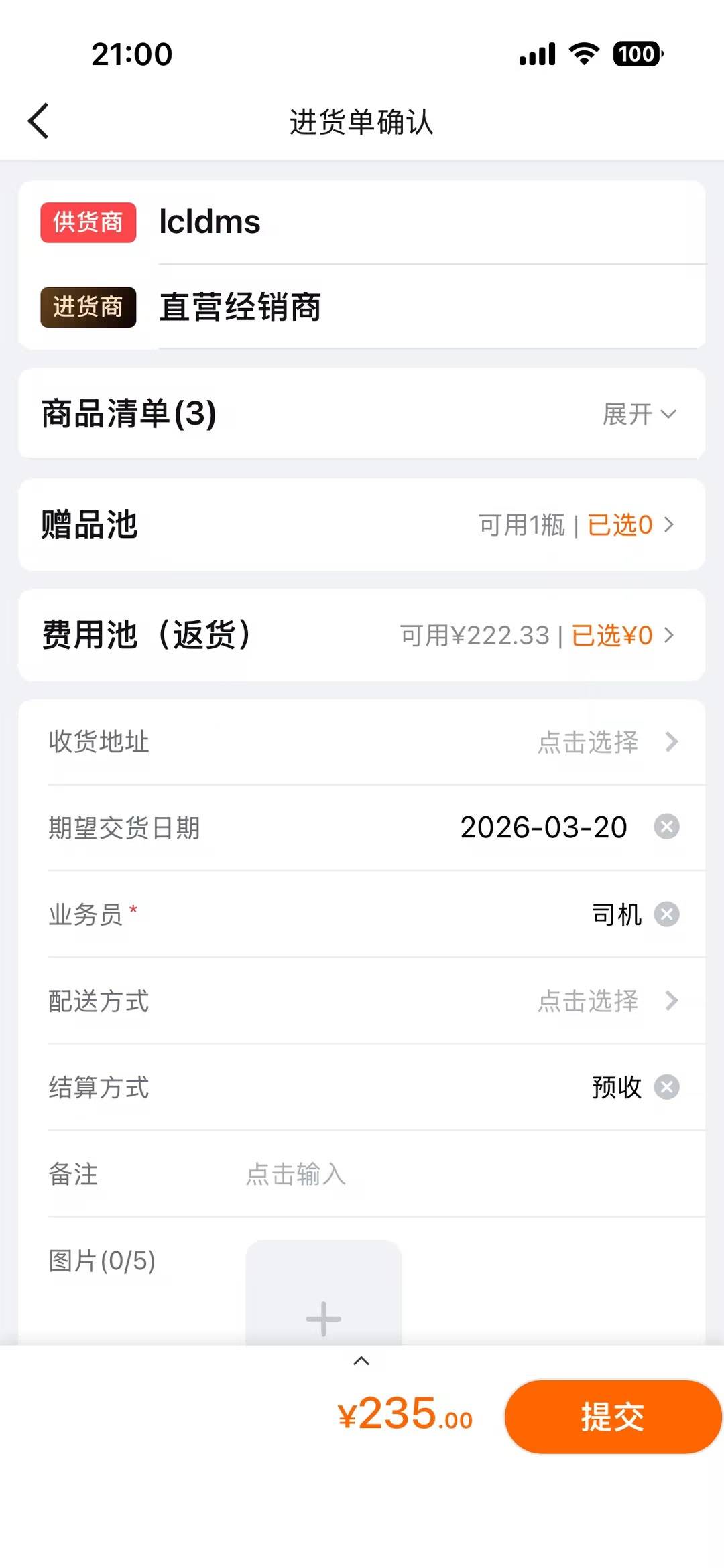 - 多维度备注说明:您可以点击“备注”输入具体的进货要求(如:避开午休送货、需搬运上楼等)。