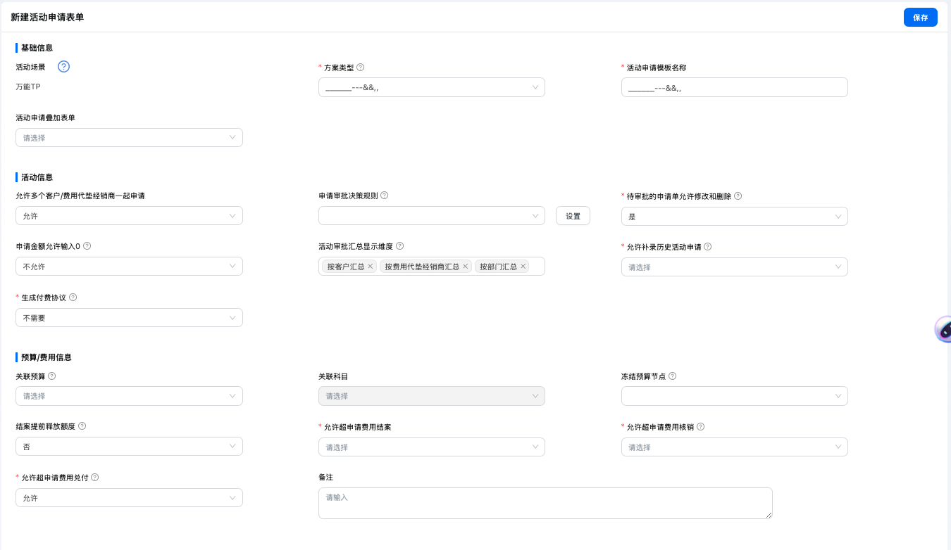 营销费用→基础设置→申请配置→活动申请单设置
