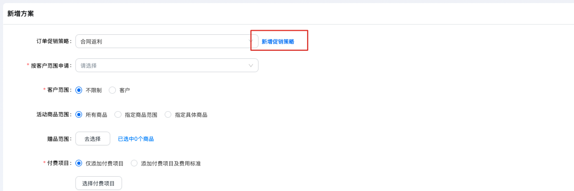 2、除目前支持的新建活动方案时新建返利政策,同步优化支持新建返利政策时关联已有活动方案