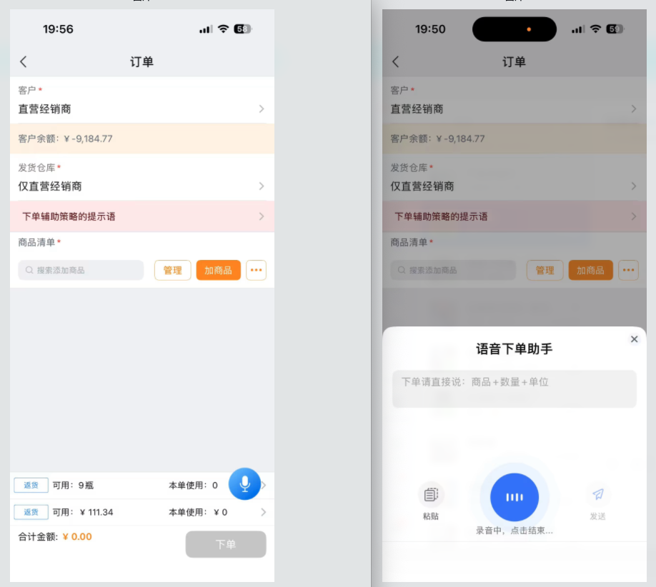 语音报单之前是按照账号数使用的,会导致企业用户的准入门槛较高,难以实现“全员覆盖”;直营订单和分销订单的语音报单之前入口位于商品选择页面,对用户来说操作入口比较深;