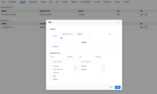 现在:基于aPaaS能力,可配置更为复杂的复合条件,如同部门内名称相似、距离相近,满足多事业部之间各自查重的场景