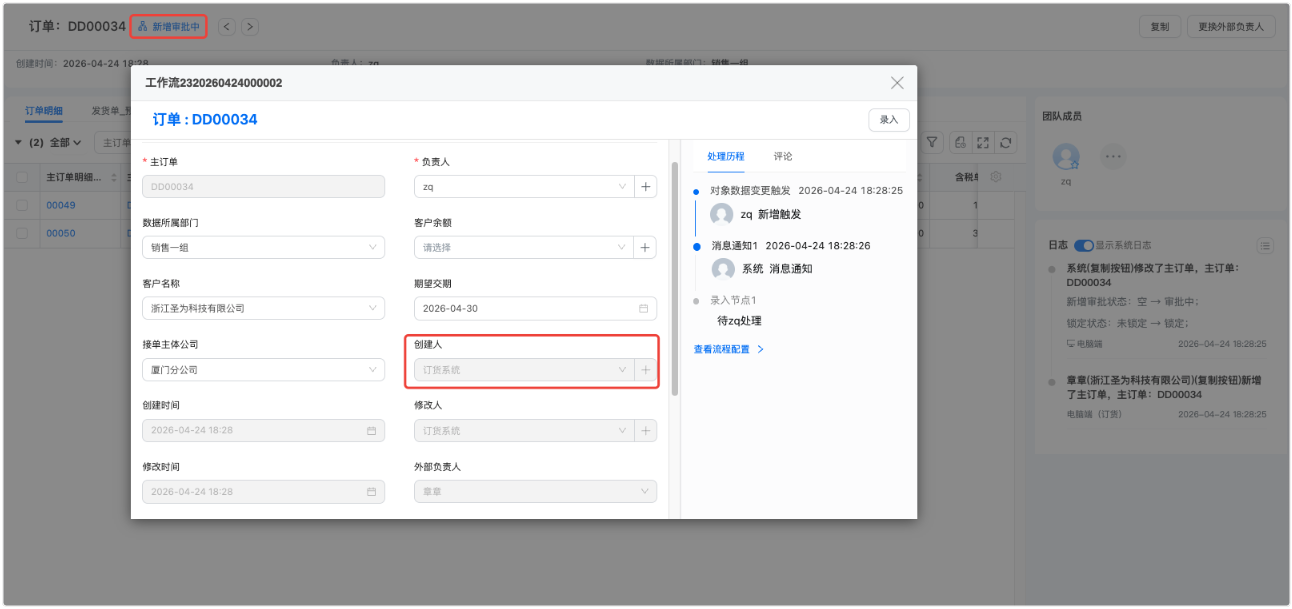 2、下单场景二:客户在门户中自主下单,提交订单后,业务员可在CRM后台查看并审批客户自主提交的订单