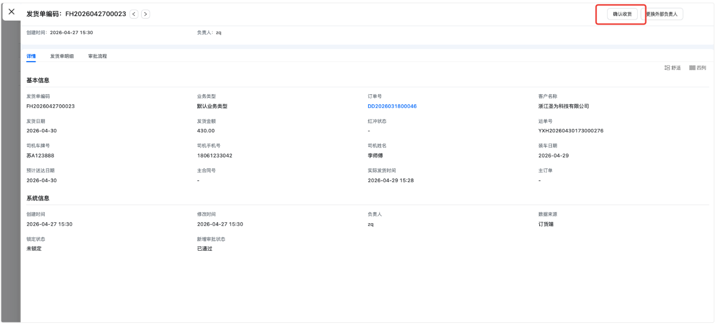 3、支持客户自主查看订单发货信息、操作【确认收货】