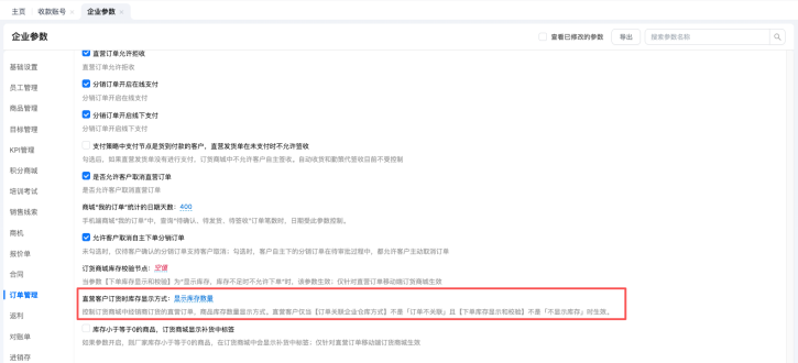 3.1 企业参数控制订货端直营订单商品库存显示方式