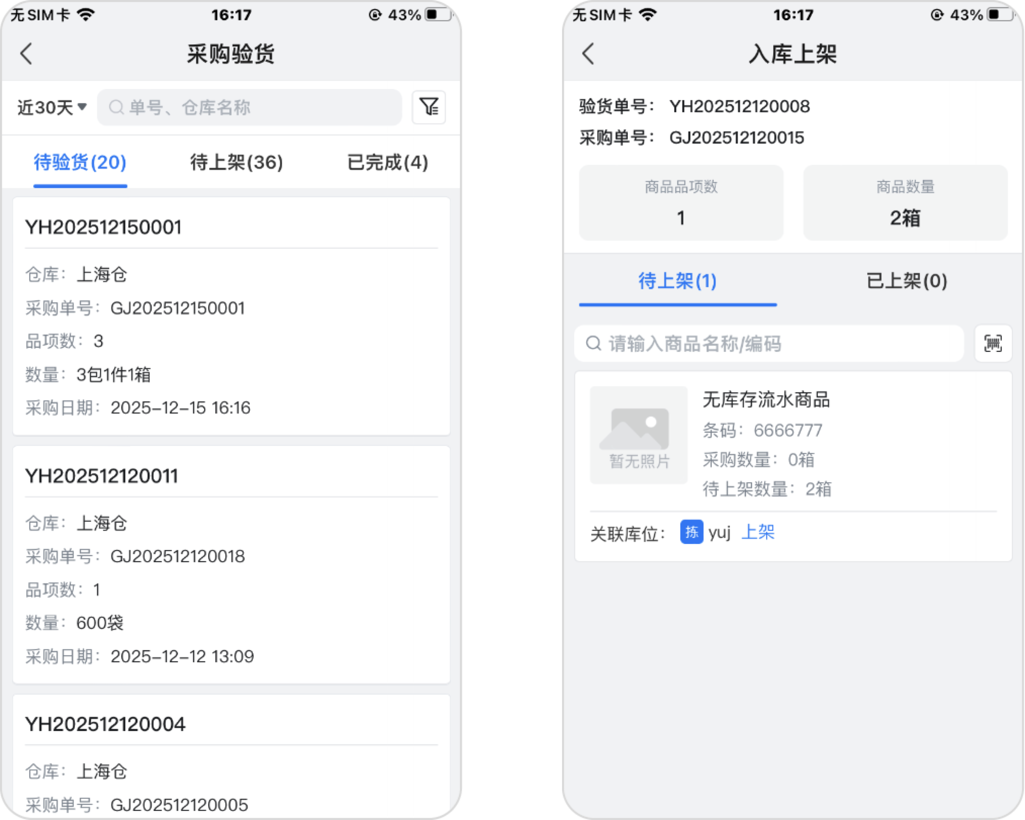 采购到货入库前,可以由仓库人员,根据实际到货情况和采购单进行验收,验收通过后可以进行审批通过的操作,确保单据与实物数据一致