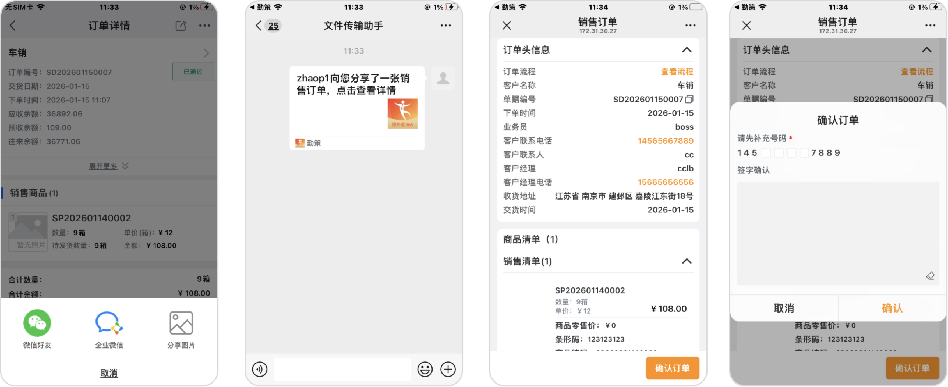 3.用户打开后,可查看单据信息,了解单据流程(创建、审批、调度等),并支持进行订单确认签字操作