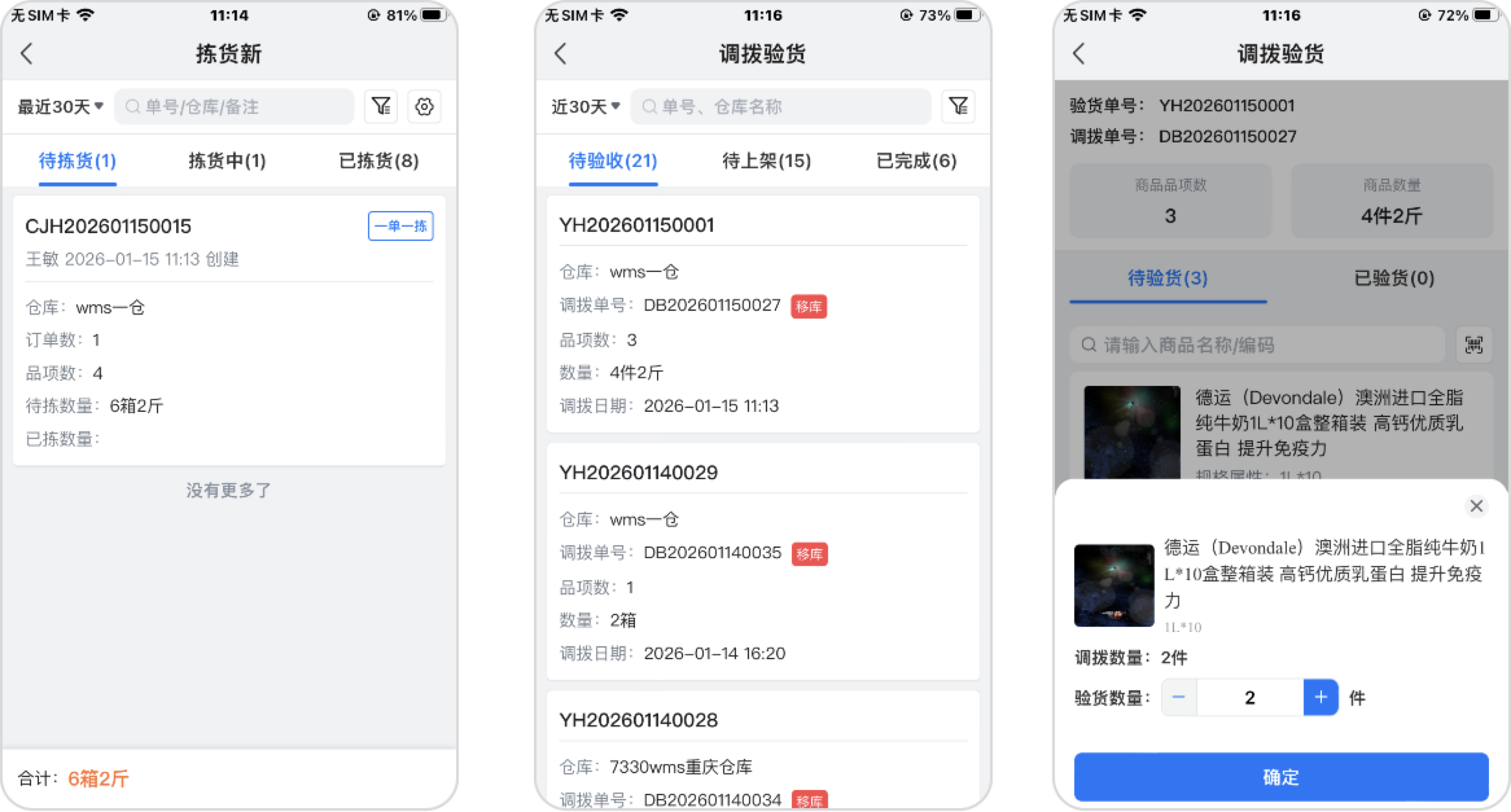 2.1 调拨单出入库支持拣货与验收管理