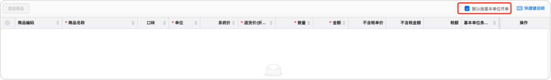 2、勾选后,开单默认按照基本单位带出开单的单位,减少单位切换的操作。