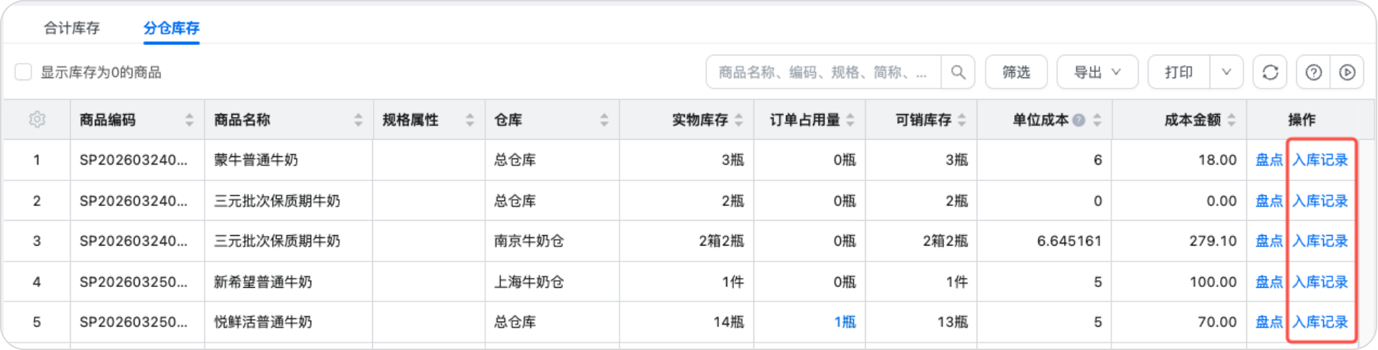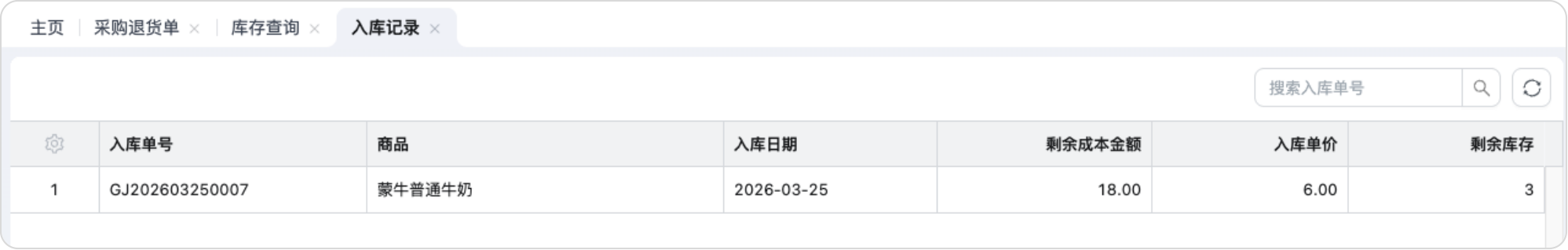 2、入库后形成不同的“入库记录”,以入库记录为维度进行库存和成本的管理;