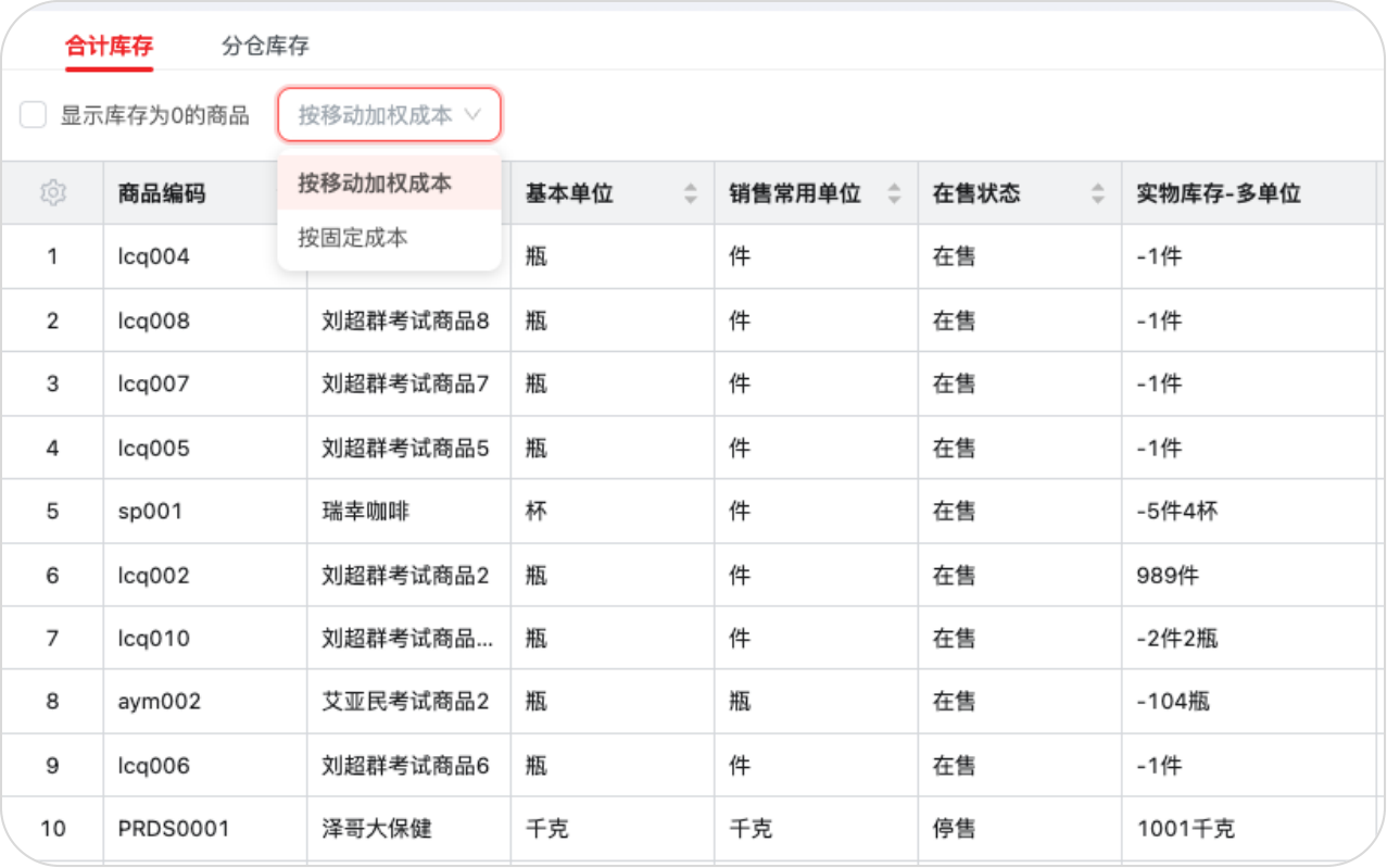 1、库存查询增加成本查看选项,支持切换为按固定成本查看;
